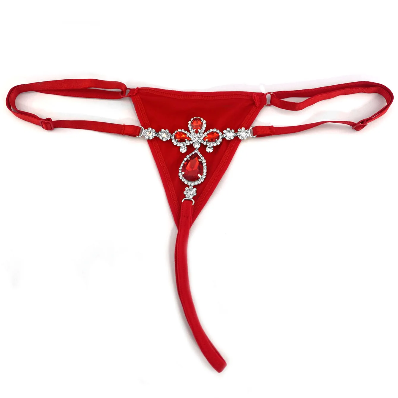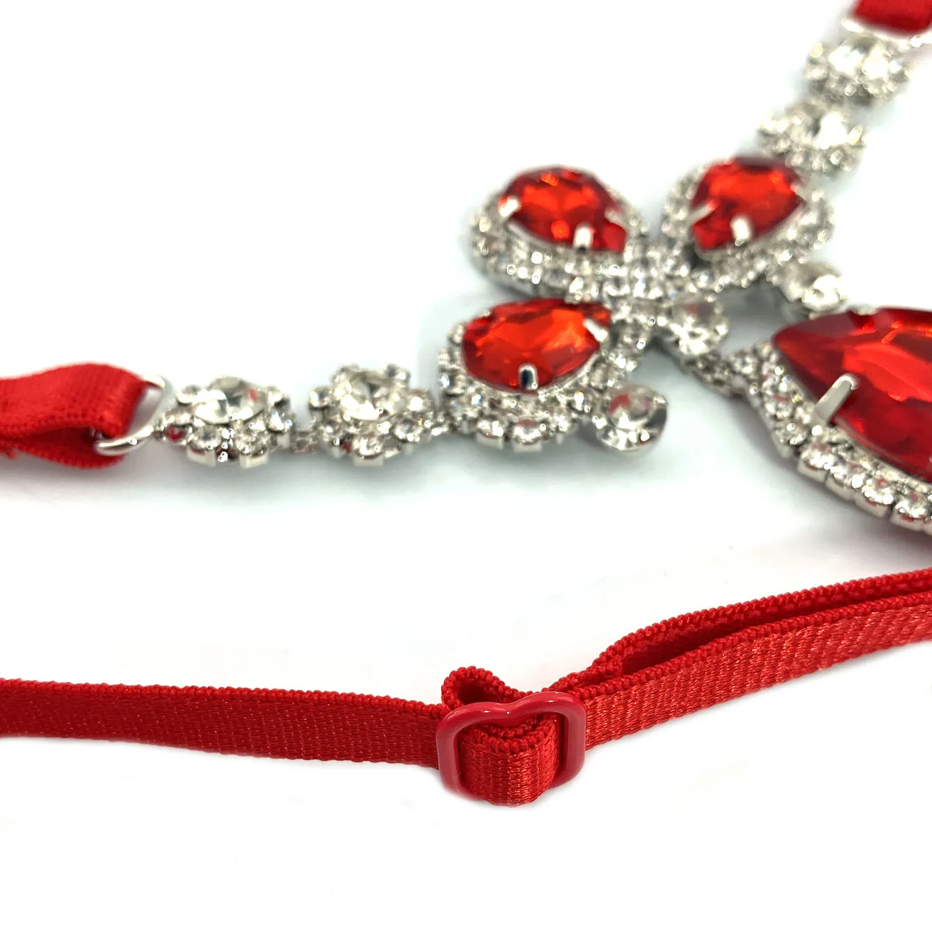 The Crimson Bloom Body Chain features a bold red thong design adorned with a flower-shaped rhinestone inlay. Perfect for summer, beach days, and poolside glamour, it adds a striking touch of sparkle and allure to any swimwear look